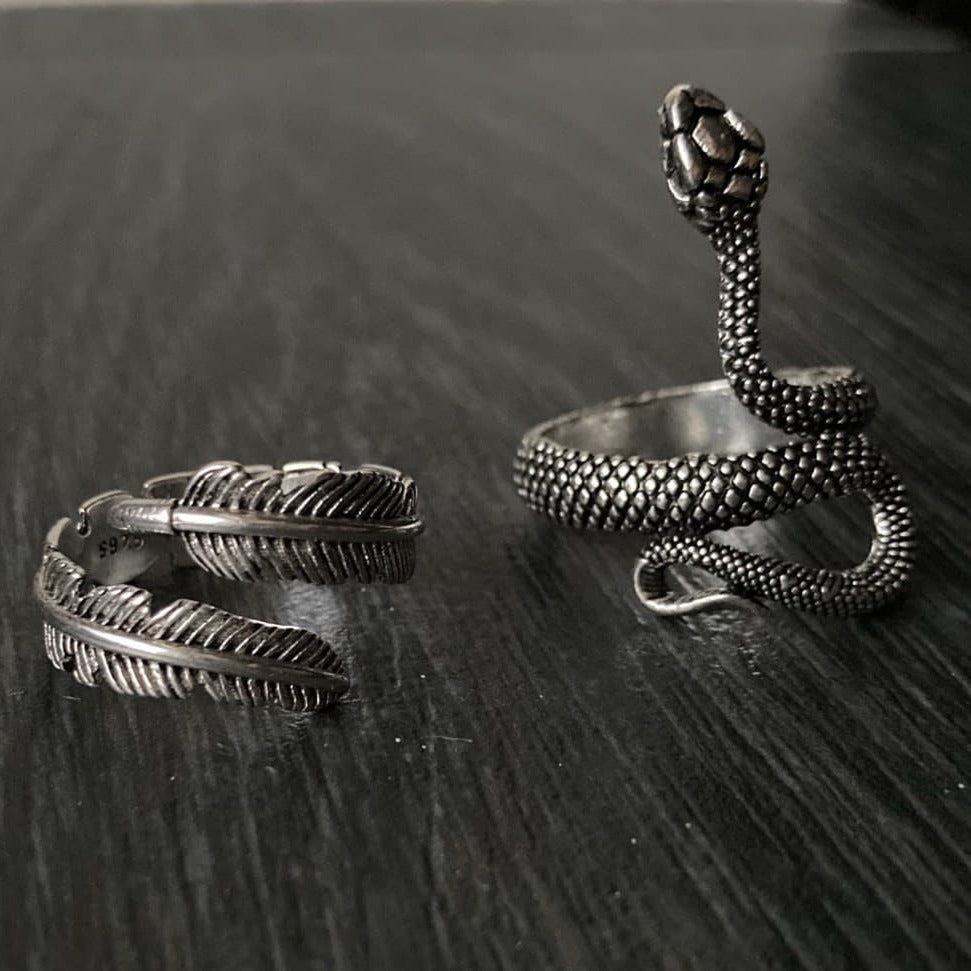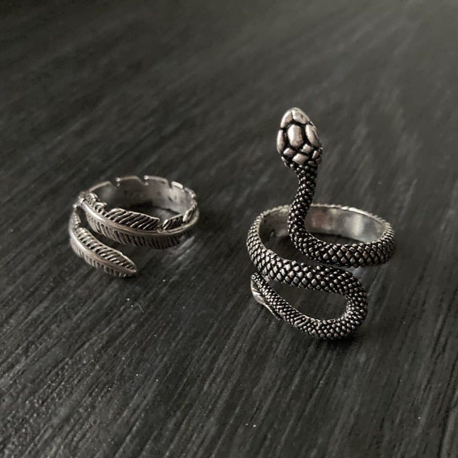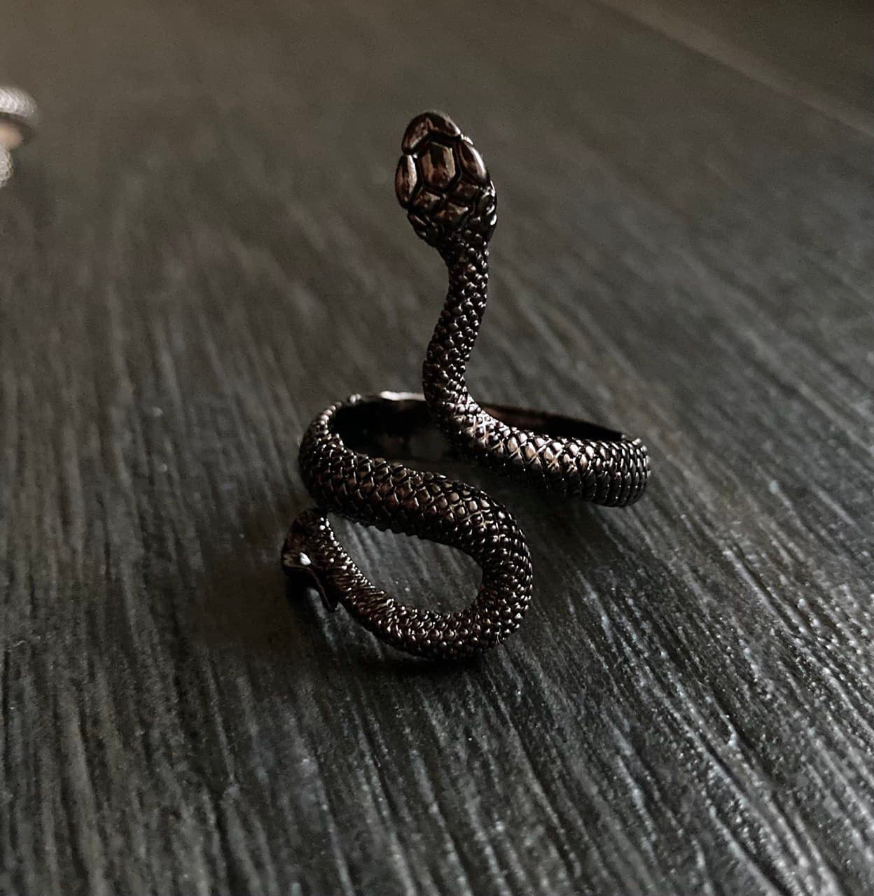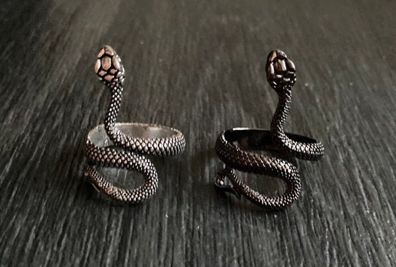 There are 2 types of snake-shaped rings available: silver and dark-colored.