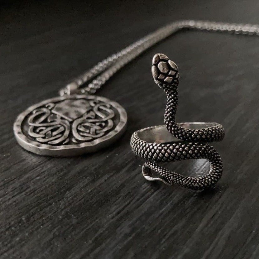 The Cthulhu necklace is perfectly matched with a silver ring in the shape of a snake.